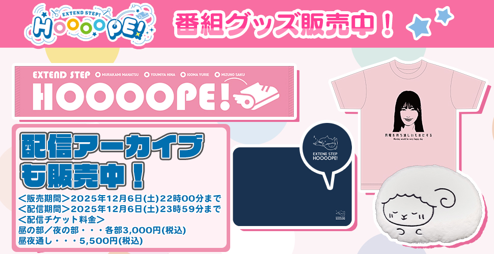「EXTEND STEP HOOOOPE! 」エクステンドショップにて番組グッズ販売中!