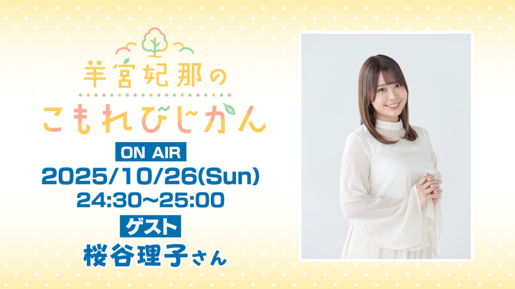 『羊宮妃那のこもれびじかん』10月26日(日)放送に桜谷理子さんがゲスト出演!